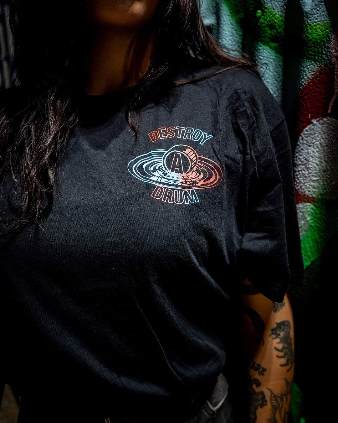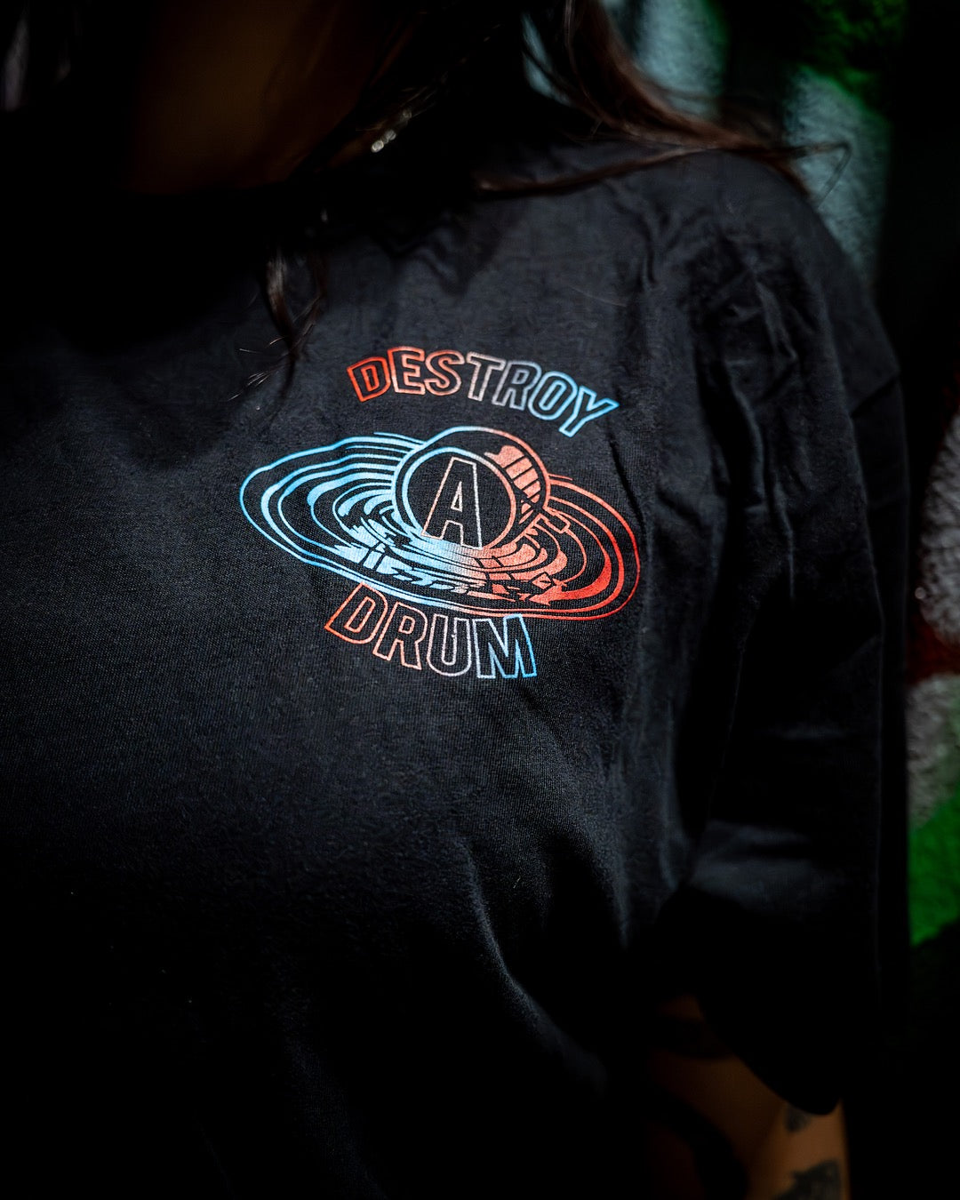 Our classic Destroy A Drum Tee in the softest material tested by our artists touring the world. We strived to create a comfortable tee that you can wear anywhere and feel just right. A soft texture and perfect blend of an easy left chest and back print. A staple point in any go-to tee collection; this is our classic stage tee.