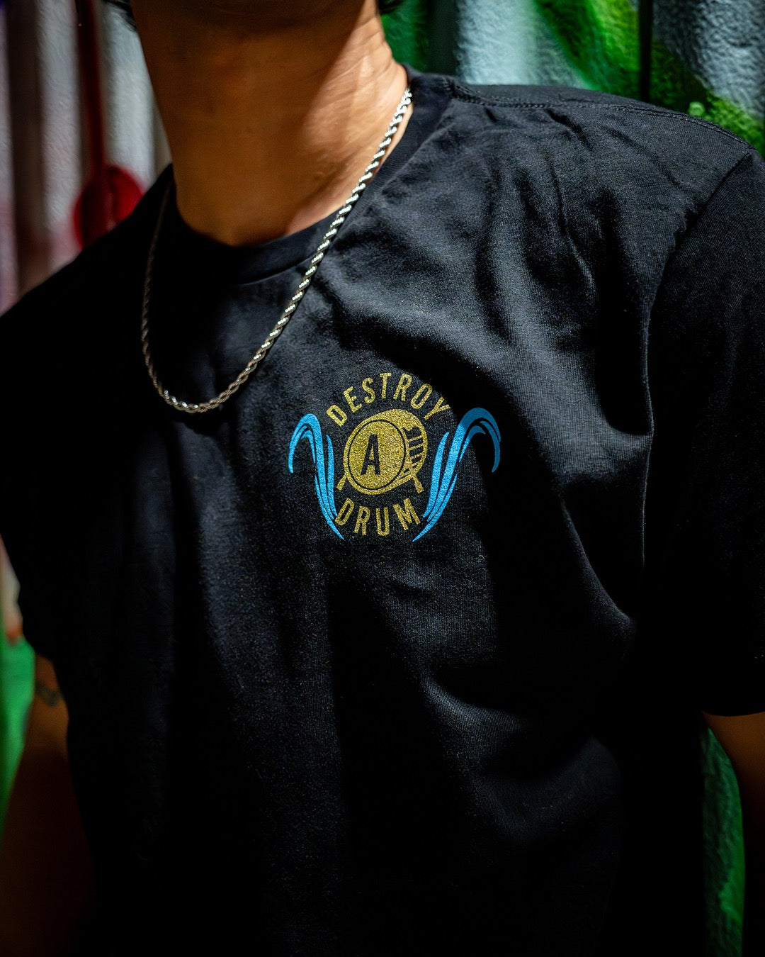 Our classic Destroy A Drum Tee in the softest material tested by our artists touring the world. We strived to create a comfortable tee that you can wear anywhere and feel just right. A soft texture and perfect blend of an easy left chest and back print. A staple point in any go-to tee collection; this is our classic stage tee.
