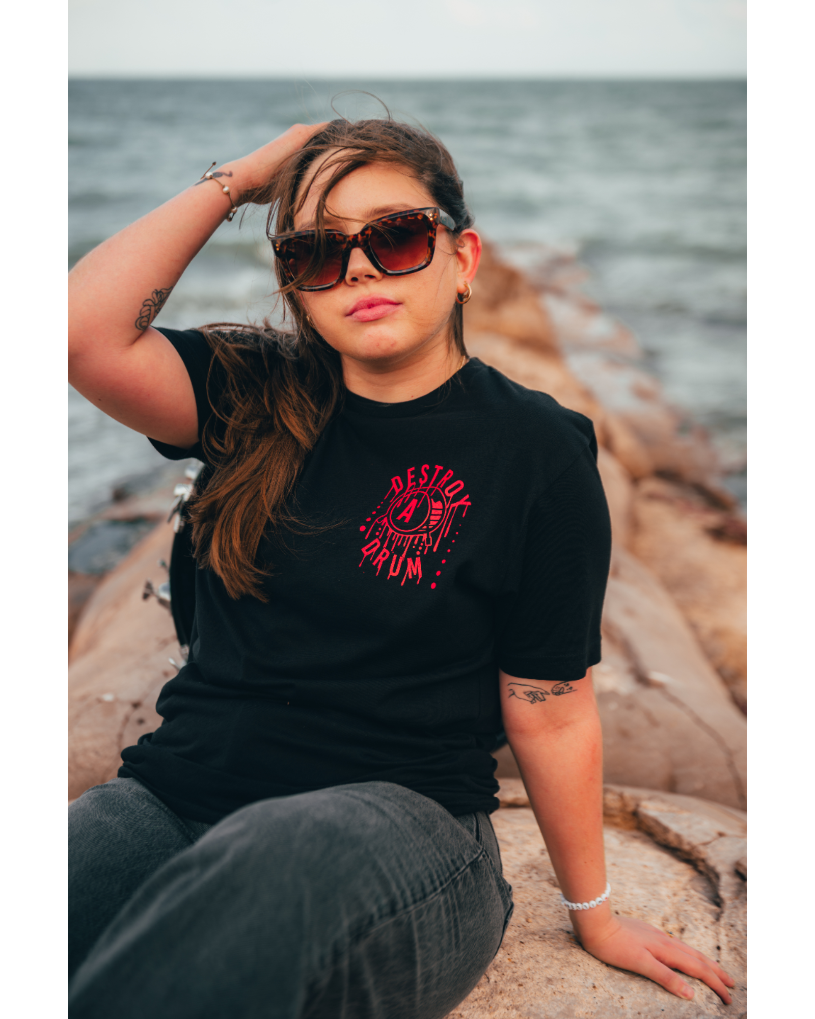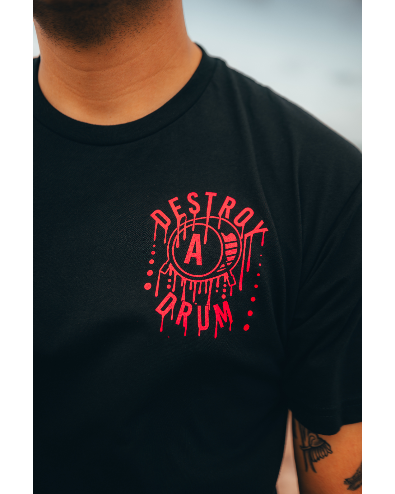 Nuestra clásica camiseta Destroy A Drum está confeccionada con el material más suave probado por nuestros artistas que giran por el mundo. Nos esforzamos por crear una camiseta cómoda que puedas usar en cualquier lugar y que te haga sentir como en casa. Una textura suave y una combinación perfecta de un estampado sencillo en el pecho izquierdo y la espalda. Un elemento básico en cualquier colección de camisetas: esta es nuestra clásica camiseta de escenario.